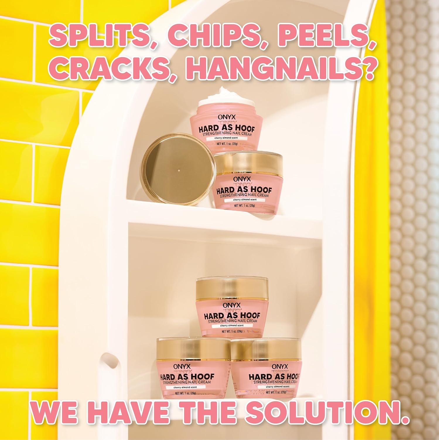 Onyx Professional Hard as Hoof Nail Strengthening Cream, Cherry Almond Scent - Made in USA, Nail Growth & Conditioning Cuticle Cream Stops Splits, Chips, Cracks & Strengthens Nails, 1 oz