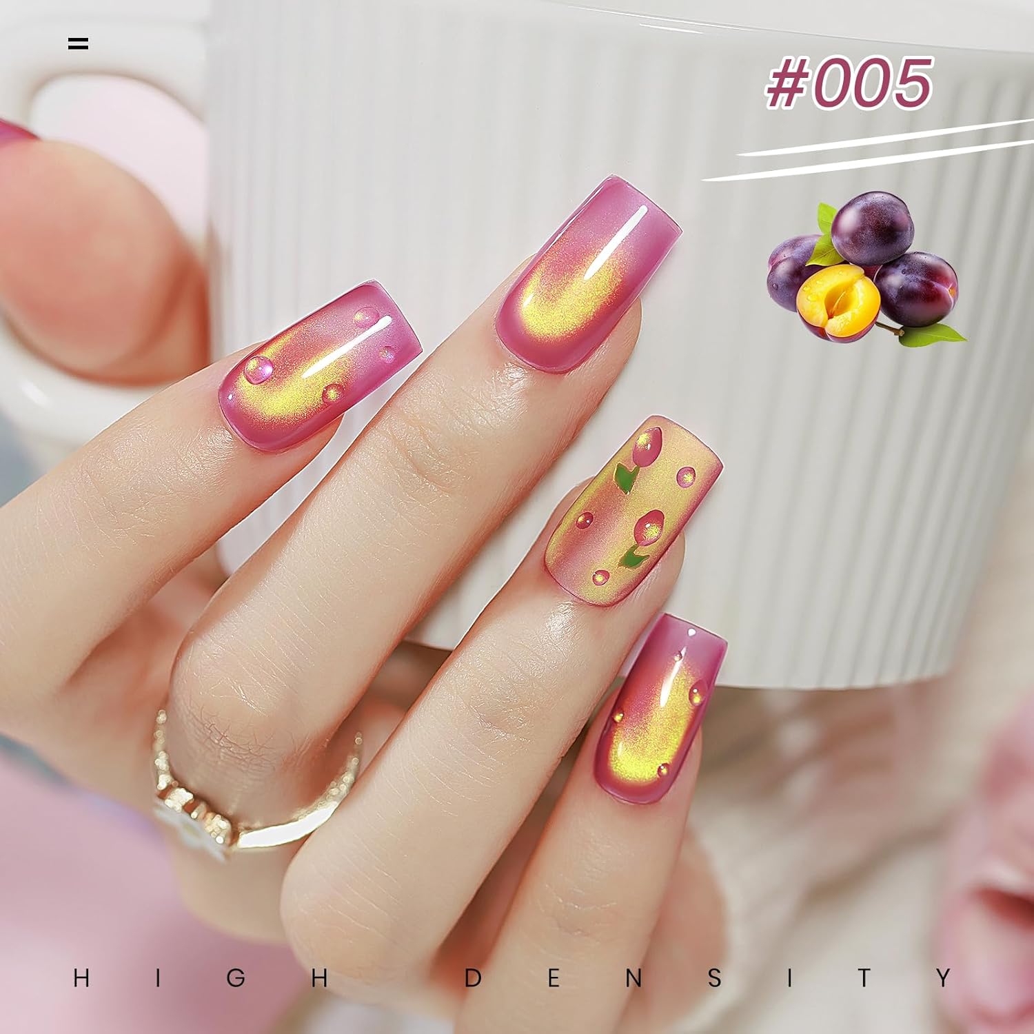 MIZHSE Cat Eye Gel Nail Polish, Fruit Colors Magnetic Gel Polish Set with Magnet, Neon Cateye Effect Green Purple Yellow Soak Off Nail Art Manicure Home Gift for Ladies