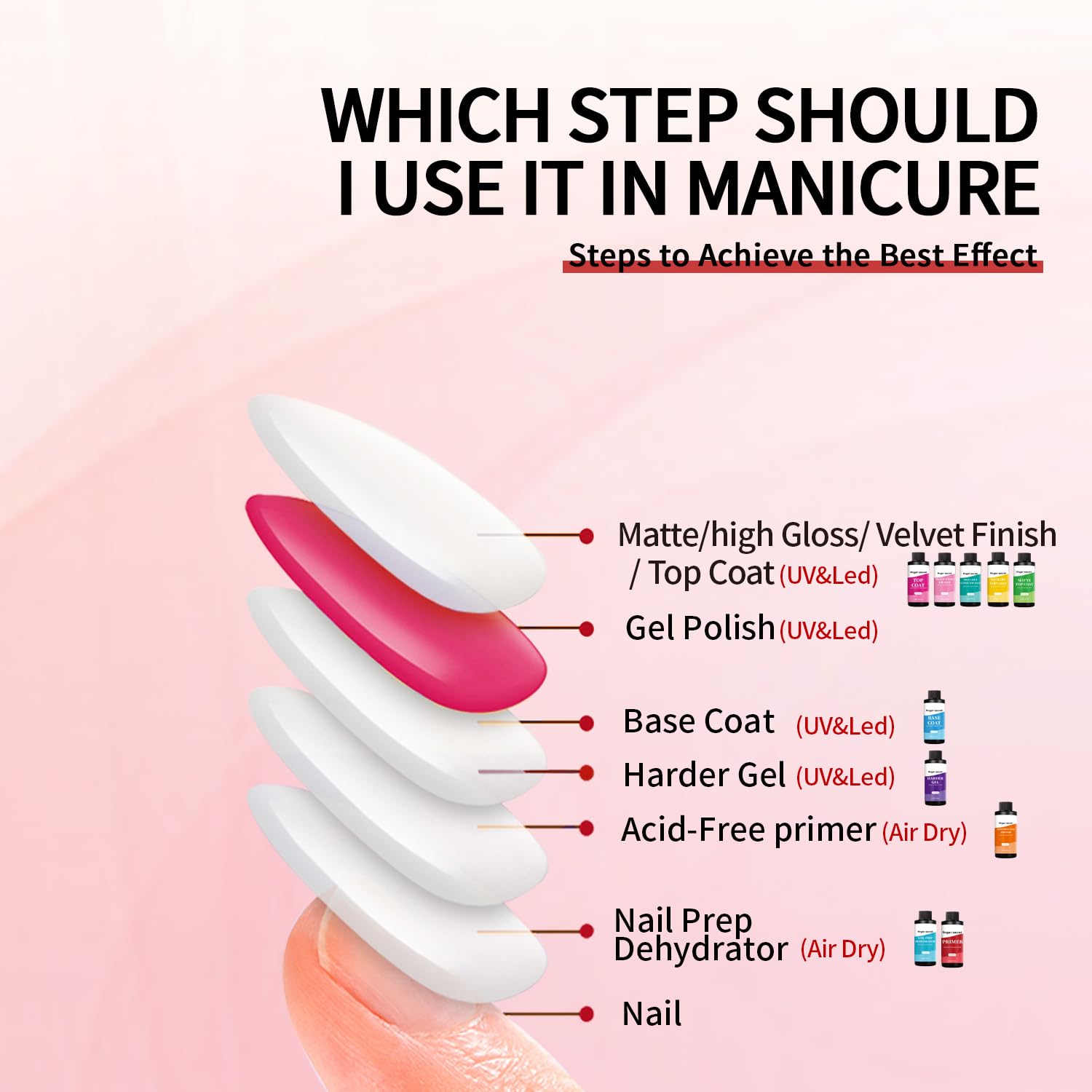 - Easy to Operate Nail Primer:Nail primer good fluidity is not easy to leave brush marks, novices can also easily paint a flat effect. Lightweight texture dries in seconds—no waiting needed before moving on to gel nail polish application, farewell to waiting for trouble.