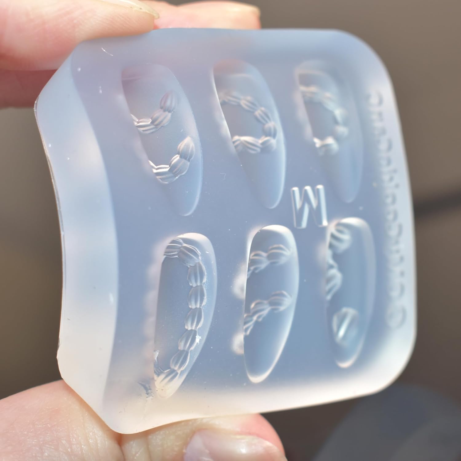 Nail Art Silicone Mold Embossed Cream Chain Design DIY Manicure 3D Carving Template with 6 Patterns, Resin Craft Making Tool Mould for Women Nail Decoration