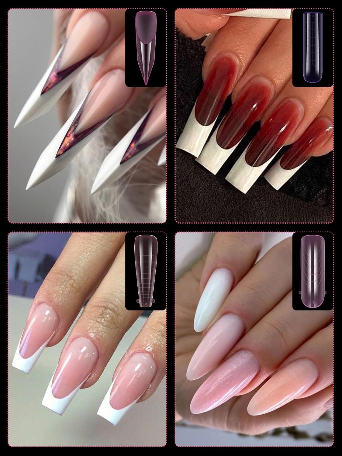 - 【Nail Form Mold with 12 Sizes】96pcs stiletto clear dual forms for poly nail gel offers 12 different nail sizes , and each size of long nail tips is separated by a small grid, a total of 12 grids, so they're easy and convenient to choose the suitable size to meet your nail's need.