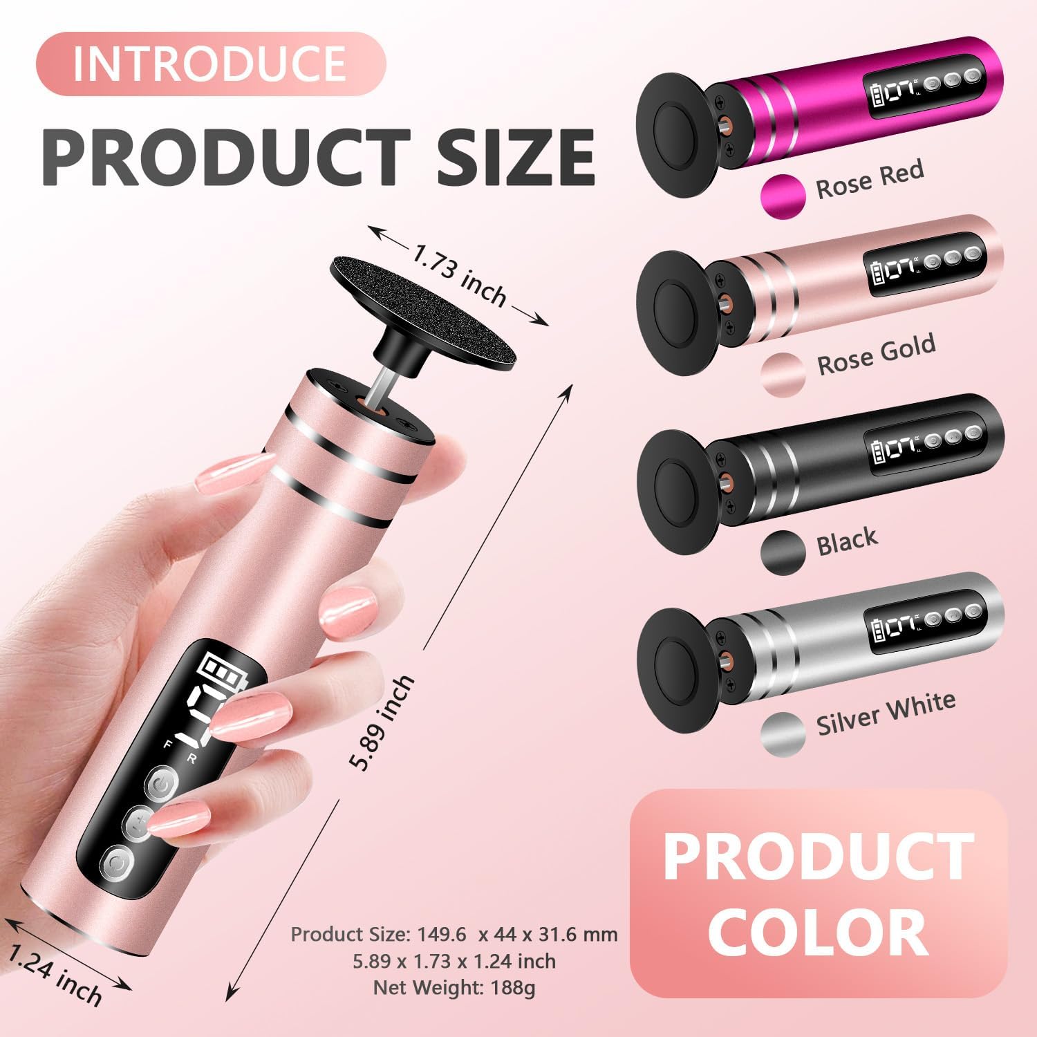 - ✅ Quality Material & Smart Digital Display – The body of callus remover is made of premium aluminum, multi-frequency motor mechanics, and high copper core, with plastic grinding heads, it is easy to clean with a wet cloth, More important, the digital display shows you the battery level, speed setting & rotation direction, preventing sudden shutdowns