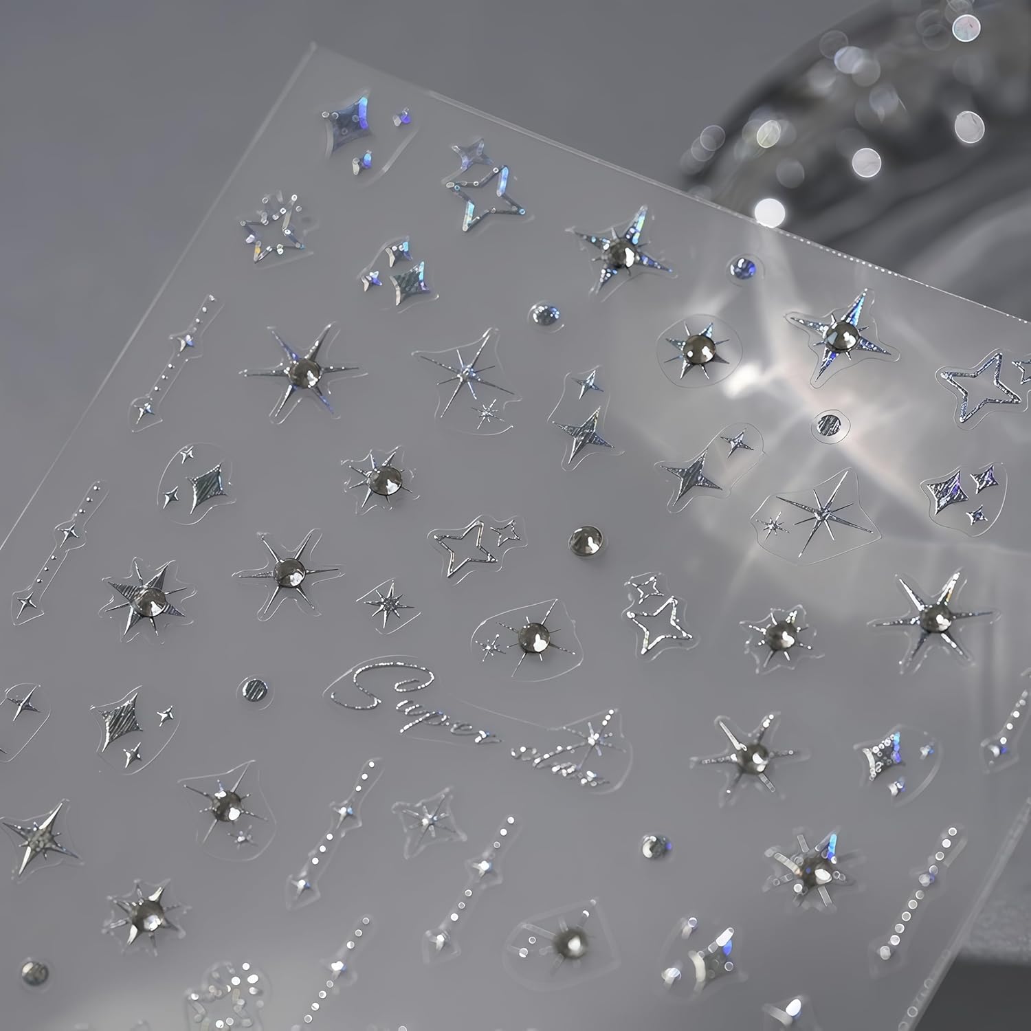 - Crystal Silver Self-adhesive Design: 3D cute nail decals for nail art design is simple and quick to use, nail stickers work great on bare nails, they will stay on for a long time and will not peel off your nails, enjoy the feeling of nail art