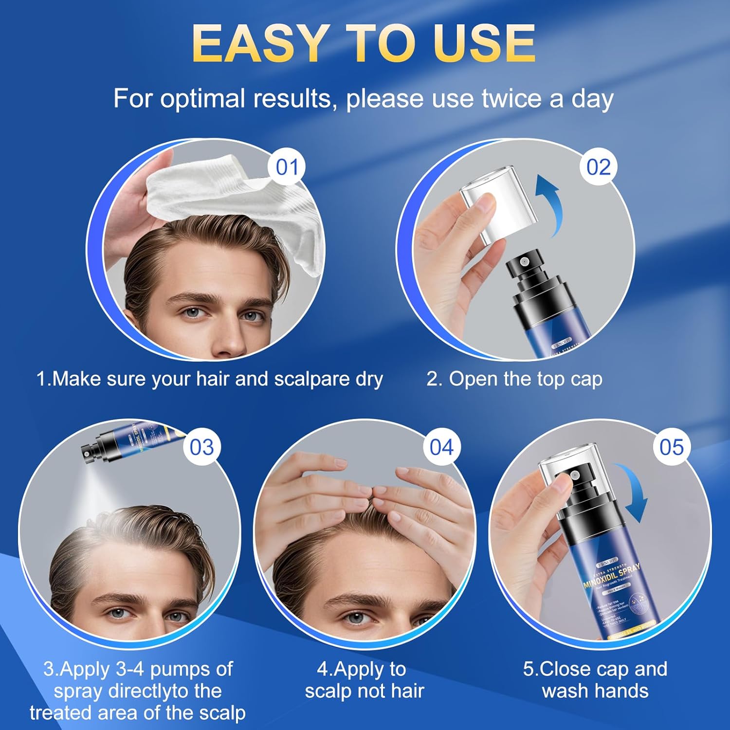 - 5.📊 Visible Results: 18% Thicker Hair in 60 Days: Clinically tested: 91% users achieved full scalp coverage in 6 months. Backed by 60-day money-back guarantee. "Finally a spray that works on my receding hairline!