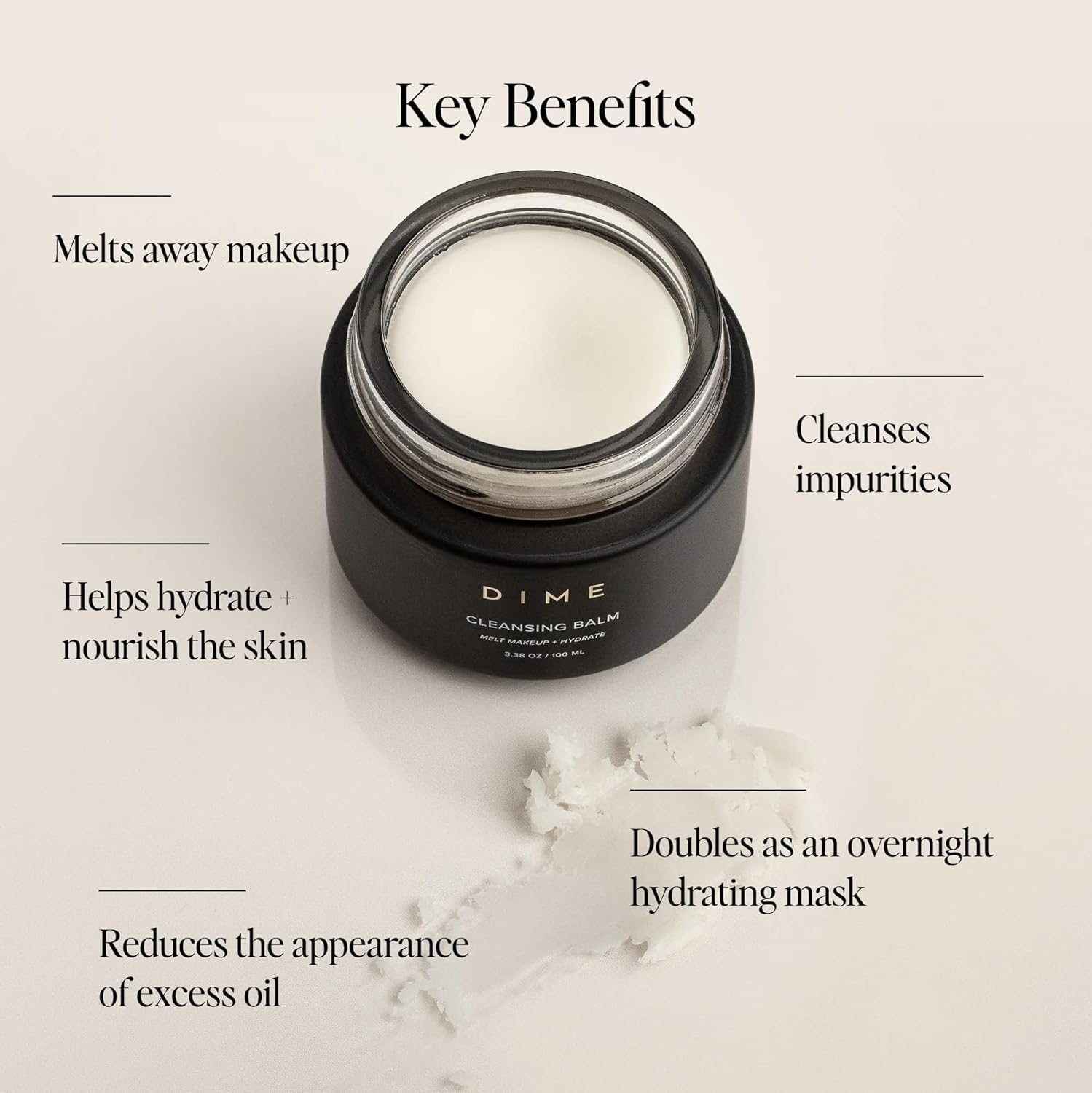 Dime Beauty Cleansing Balm, Oil Makeup Remover and Face Cleanser, Hydrating Eye Makeup Remover with Squalane, 3.38 oz / 100 ml