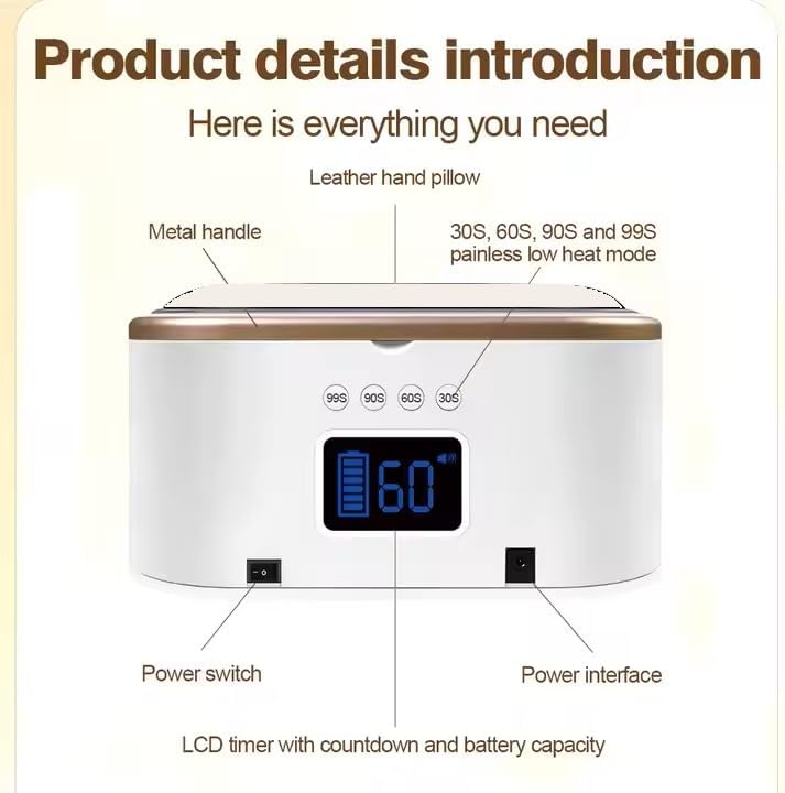 Sophie Arts Super Strong LED/UV Nail Lamp, 82 LED Beads, 12-Hour Battery Life, Fast Dry for UV Gel, Acrylic and Builder Gel (Black)