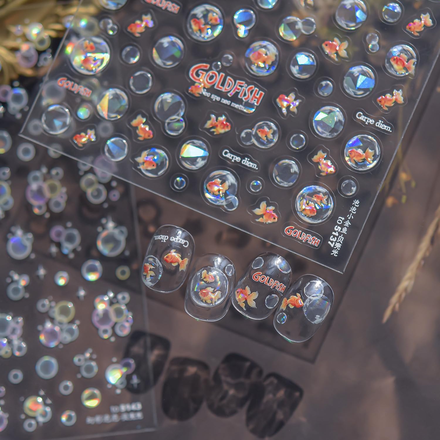 - Easy to Use: 5D embossed flowers/butterfly/goldfish/star nail art stickers are easy for you to apply; You can apply nail polish first, and then stick the nail sticker to your nails, last seal them with clean nail polish; Please note that the nail polish is not included in the package.