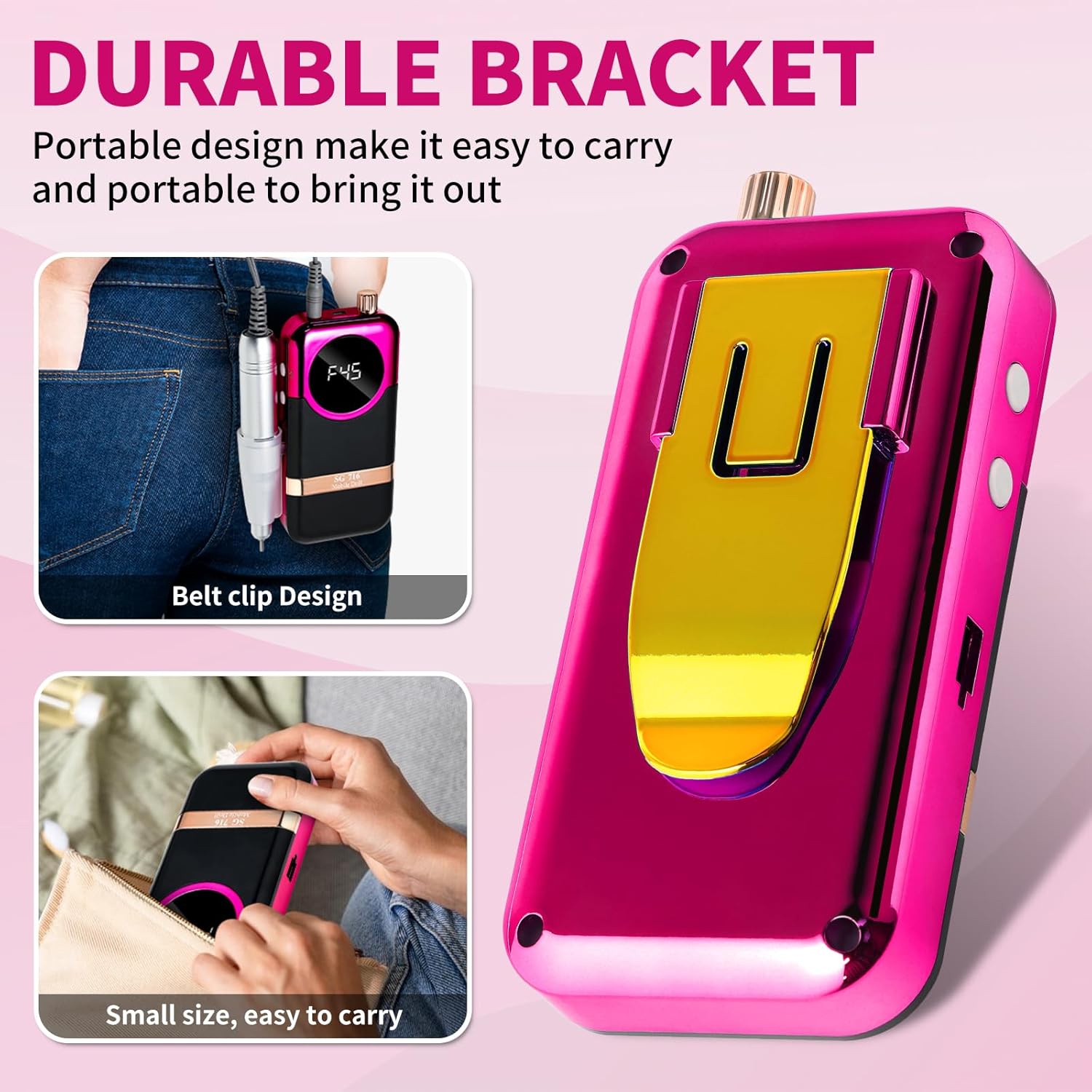 Electric Nail Drill Professional Kit - 45000RPM Electric Nail File Efile Portable Nail Drill Cordless with Bits & Base,E File Machine Nail Grinder for Women (Rose Red)