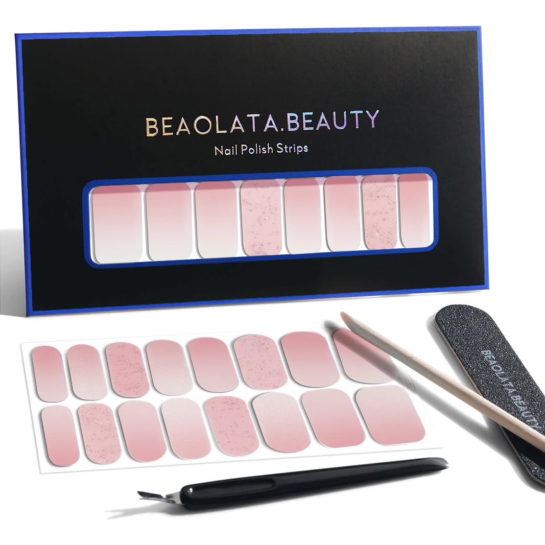 Nail Polish Strips, 32PCS Salon Quality Wraps, Long Lasting Gel Nail Stickers for Women Easy Apply& Remove (Cosmic Mist Pink)