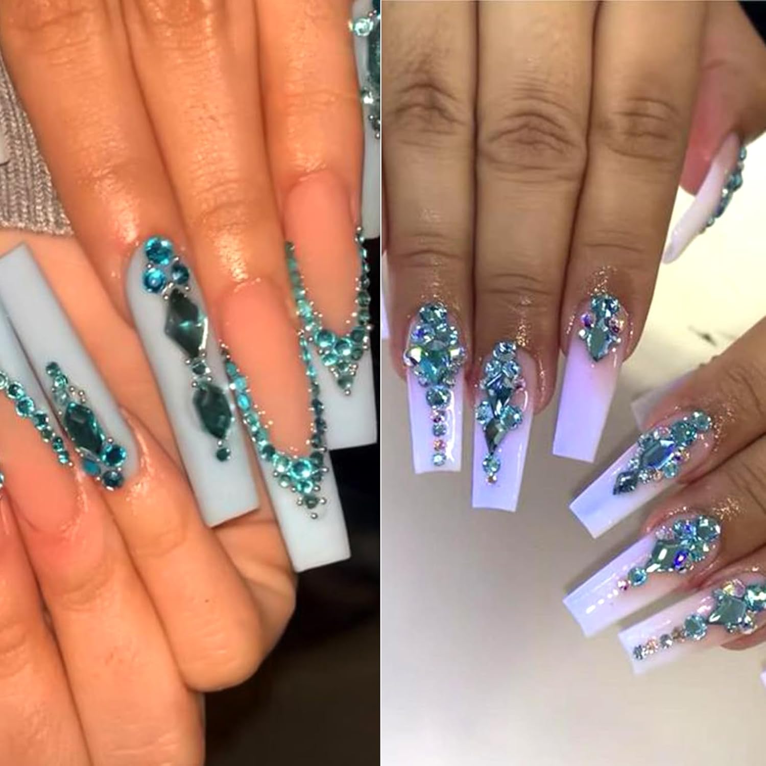 - ★Multi shaped - Lake blue nail rhinestones Is made of High-quality glass and has delicate and exquisite Shine is very hard and not easily break. superior to resin and acrylic, and can ensure the Long-lasting effect of your manicure. the crystal Lake blue coating Is bonded firmly to the outer surface of each crystal bead with durable sparkling and brightness crystal rhinestones gems.
