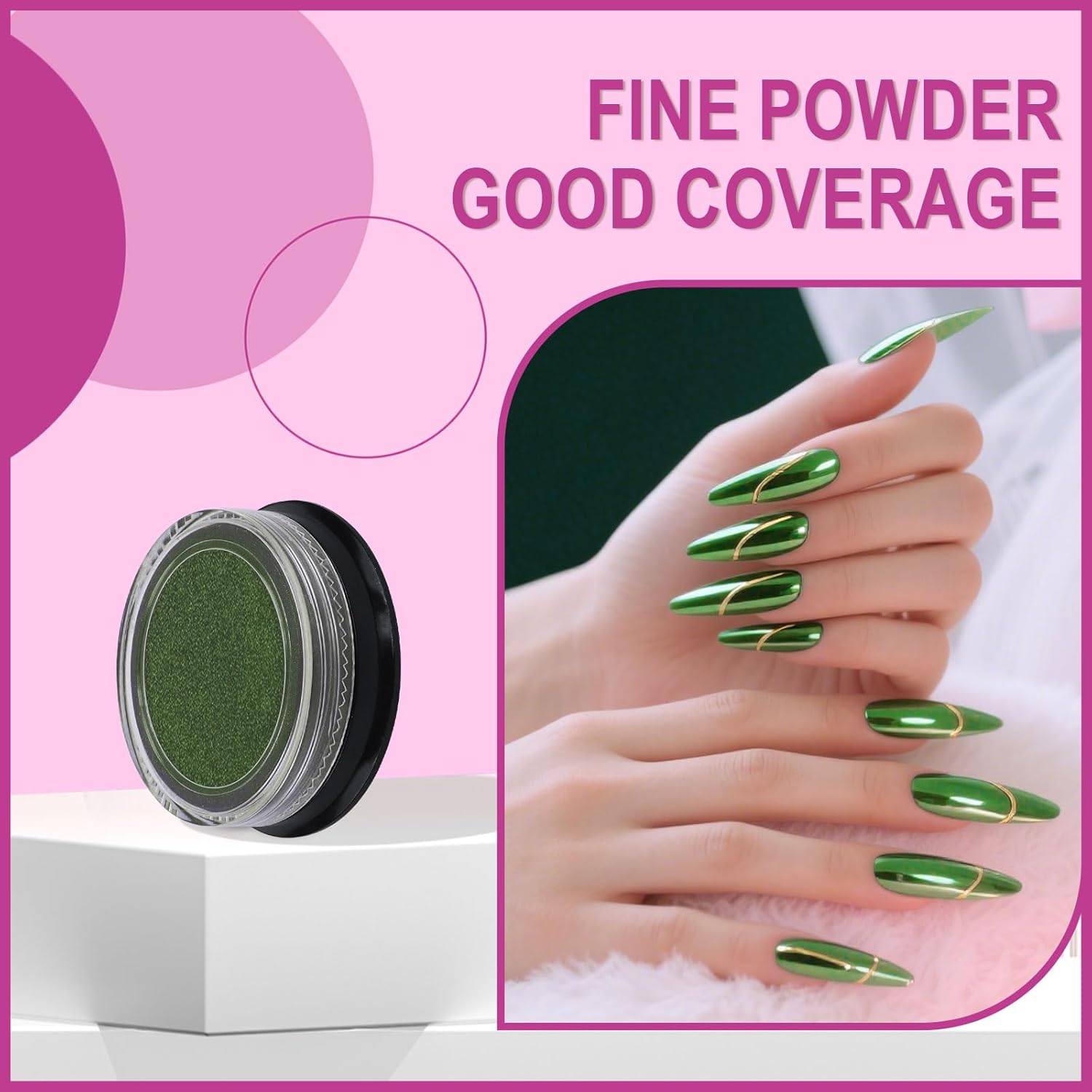 - A little Goes A Long Way:They are very fine powders so we only need to apply a small amount to finish each nail. A little goes a long way. It's enough for you to do 40-50 manicures (more than 300 nails) at the nail salon or home for each jar