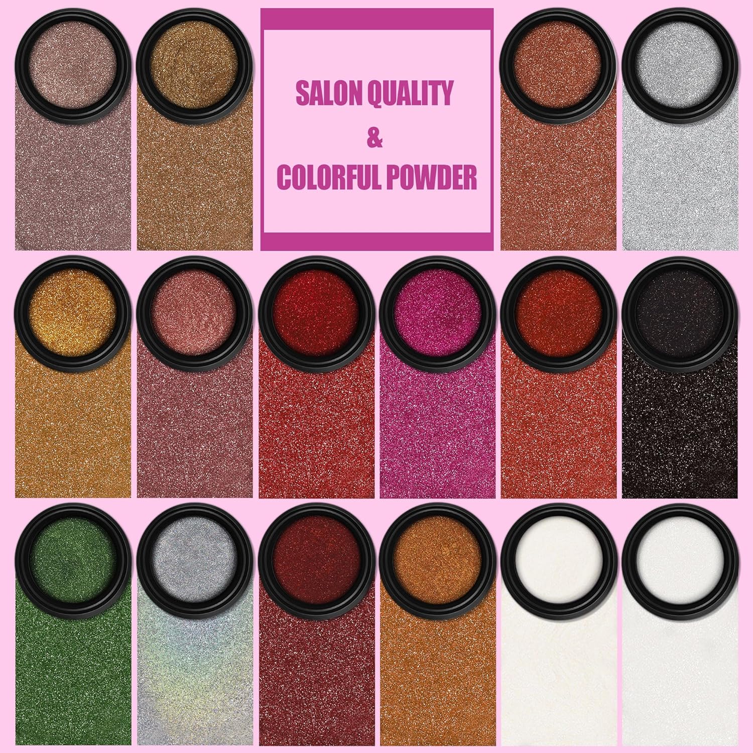 - QUALITY AND QUANTITY :Each jar has 1 gram of powder, instead of just a little bit per jar. Artdone chrome nail powder has very good shining mirror effect, they can made different effects with different background colors. If you need a darker color, you can choose black or another dark color as the base color, if you need a lighter color, you can choose a white、pink or transparent base color to applied powders