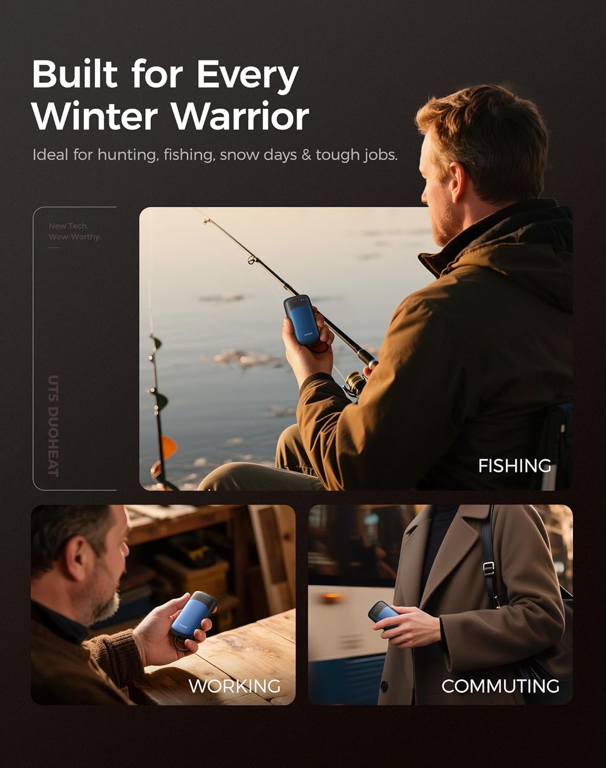 - Instant Full-Palm Warmth – Double heat area with the dual-sided electric hand warmers, heats up in just 3 seconds, full-palm warmth from palm to fingers, perfect for camping, hunting, fishing, hiking, or the daily winter outdoors.