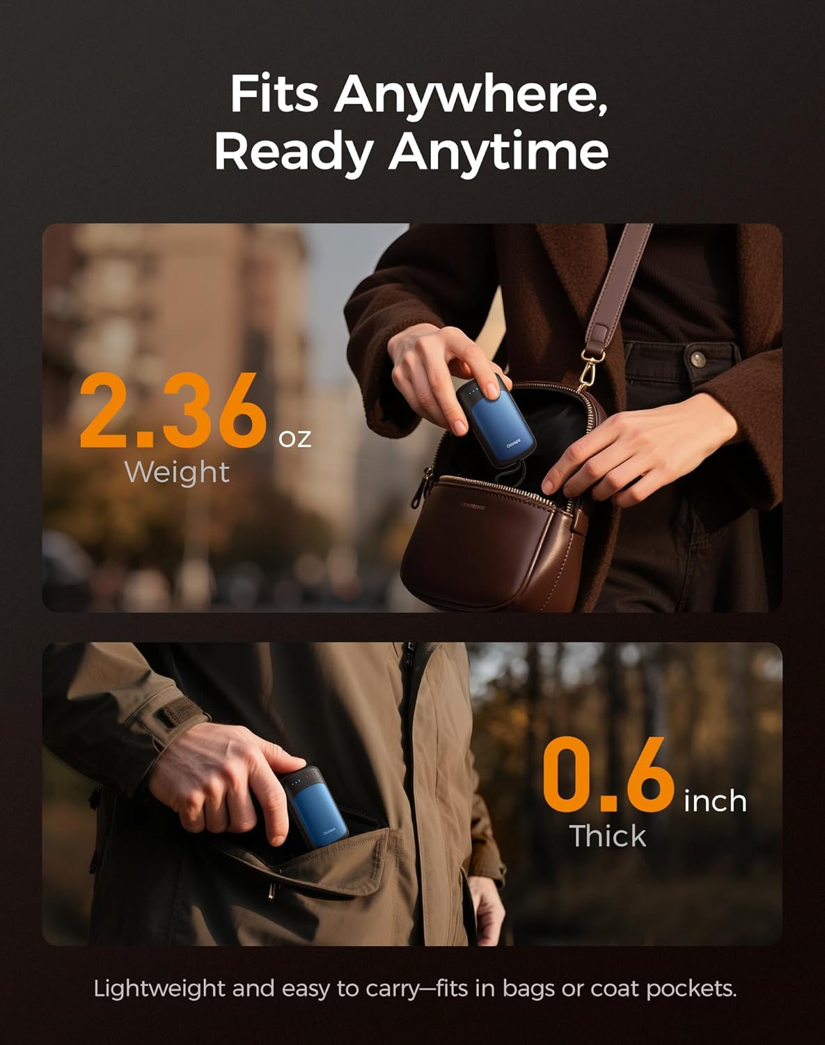 - Ergonomic & Stylish for All Hands – Sleek oval heater fits perfectly in any hand, making it a winter essential for musicians, crafters, tech workers, and anyone who needs heated hands without bulk. Includes LED screen and silicone lanyard for convenience.