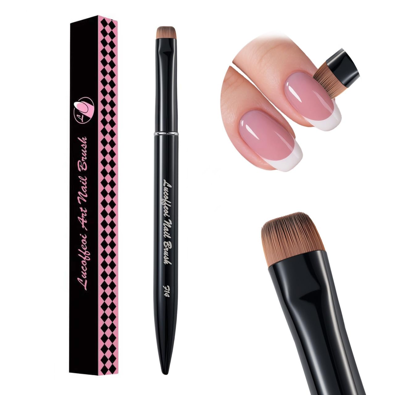 - 🟣【Ultimate Nail Brush for French Tip & Clean Up】 Professional-grade nail brush for french tip designs and nail polish clean up. The Flat Tongue shaped nail art brush edge ensures precision for french manicure brush work while doubling as a clean up brush for gel nail polish.