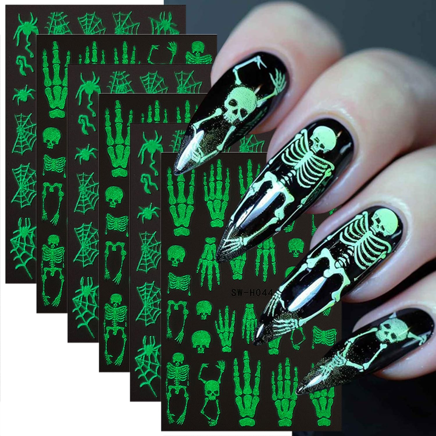 - Skull Sticker for Nail Art: You will get 6 sheets 3d glow in the dark nail art stickers decals, skeleton nail designs decoration, It provides you with a variety of options to give full play to your rich imagination of nail DIY