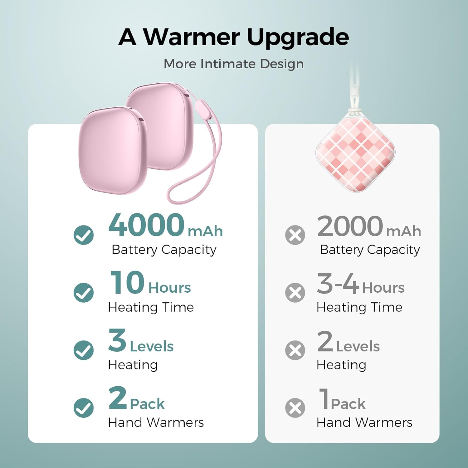 Pocket Size Hand Warmers Rechargeable 2 Pack, Heat for 10 Hours AI Smart Chips Ultrathin Electric Handwarmers with 4000mAh, Portable Electric Hand Warmer, Hunting Camping Hiking Men Womens Gifts