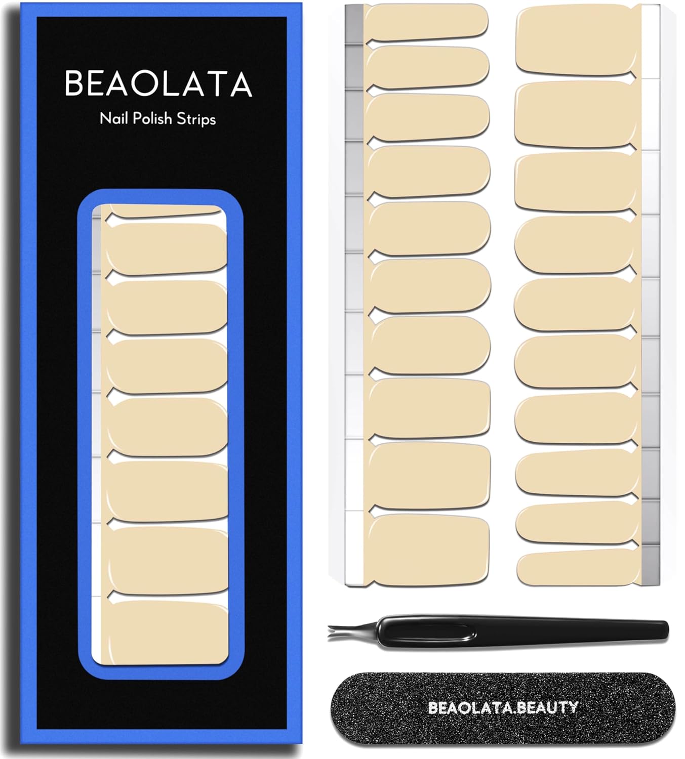 Nail Polish Strips Long Lasting, 20Pcs Wraps, Easy Apply& Remove Salon Quality Gel Nail Stickers (Sand Light Beige)