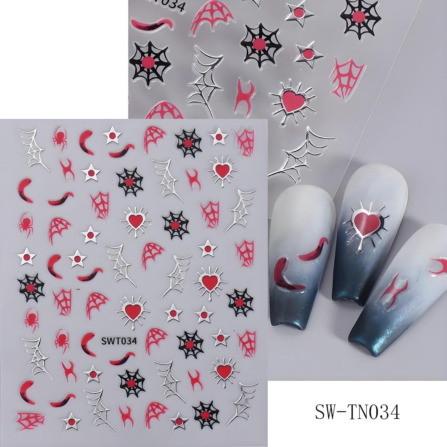 - 【Halloween Stickers Set】You will get 5pcs Halloween nail decal, many Halloween elements patterns such as black, gold, sliver, heart, star, moon, spider, spider web and so on. So many choices that will meet your nail art decorations needs for Halloween party.