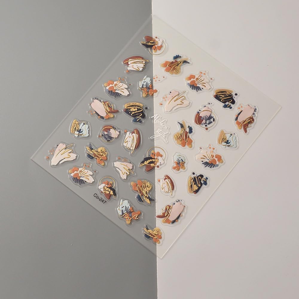 Fall Nail Art Stickers 3D Embossed Oil Painting Nail Stickers, Self-Adhesive Durable Nail Art Decals for Women Girls, Nail Wraps Decoration Manicure for DIY Acrylic Nail Accessories