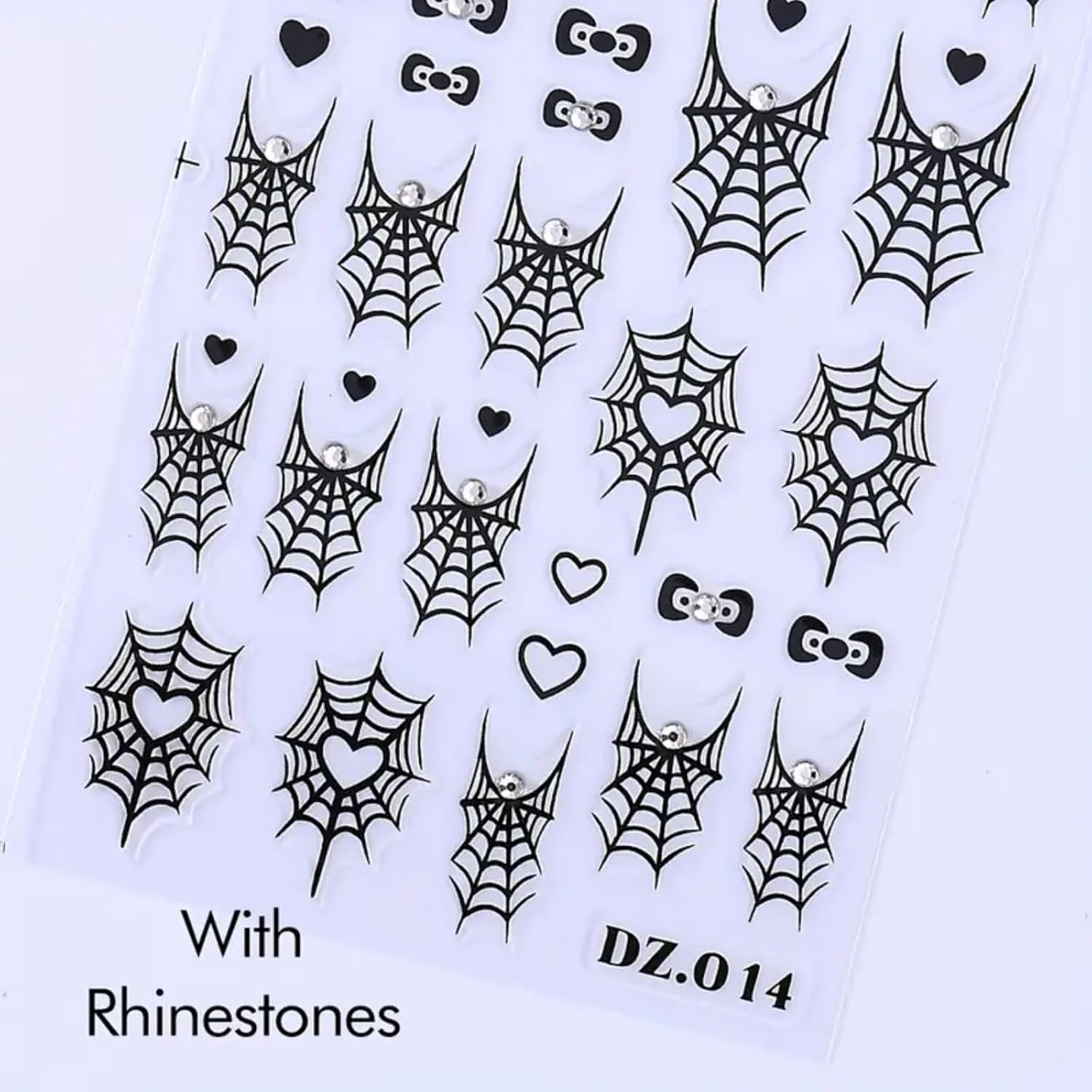 4PCS Halloween Nail Art Stickers Black Spider Web Spider Nail Decals with Rhinestone Crystal Spider Web Spider Nail Stickers Cute Bow Heart Halloween Nail Art Supplies for Women Manicure Decorations